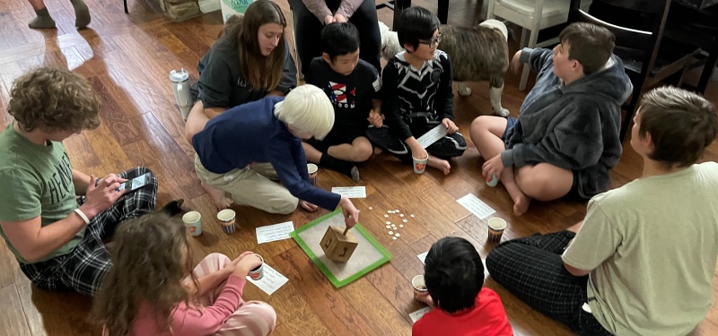 During our Family Dinner this week, we talked about the 2nd Sunday of Advent and Hannukah. And for our little activity, we played the Dreidel game (also spelled in various ways) which is typically a part of Hannukah. During this historic time, the Greeks prohibited Jews from practicing their faith in any way, including studying the Torah. Kids would gather in hiding places to learn the Torah, and if discovered by Greek soldiers, would quickly pull out and play with a dreidel as if nothing else was happening. Our family game is what's pictured above.