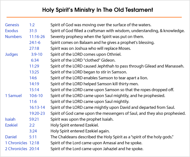 Here's a chart I found this week showing Old Testament references to the spirit of God (from here). It includes a few we've already talked about, and quite a few more.
