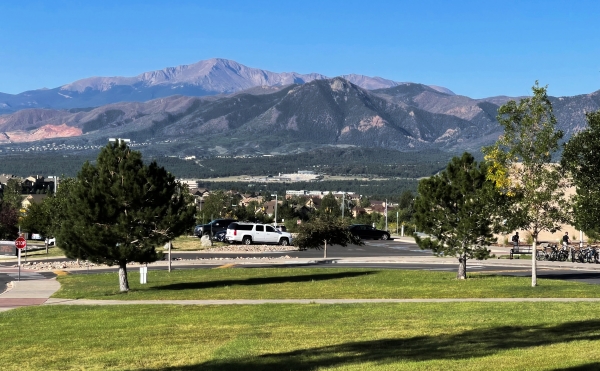 We occupied the grassy area in the foreground facing Pikes Peak in the background.