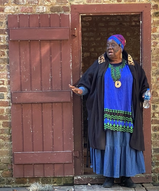 Several of us traveled this week to Charleston, SC for a family wedding. Had a great time. The weather was perfect (maybe a little chilly), the wedding was a hoot, lots of fun stuff to see and do in Charleston, not to mention the very good restaurants. Some Charleston trip photos and details are here.But the "big discovery" was the Gullah (or Geechee, sometimes) people (Wikipedia) whom we had never heard of before (or never remembered maybe from school days). (The vowels in Gullah sound like the vowels in bubba.) We stumbled onto this discovery at the Boone Hall Plantation in Mt. Pleasant, SC (just over the bridge from Charleston). A Gullah woman (pictured at right) gave a roughly 40-minute presentation about the Gullah people, part of their story, some music, and a bit of the language. Fascinating!